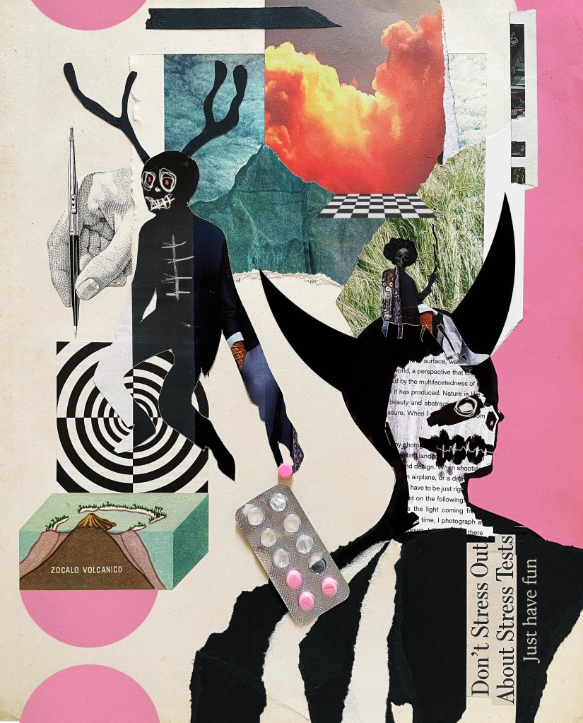 As a collage artist, 2022 was an interesting year… I tried new stuff, like mixing real objects in my collage works, I threw away 2 works because I fucked up using ink, oh man, I loved those works… There’s no evidence of them because I was experimenting and I didn’t take photos at all. This is “INFERNO”, a study of textures, figures and unusual compositions, mixing real life objects with paper.